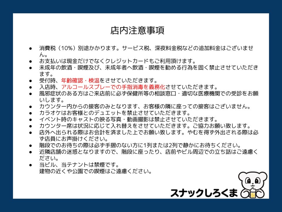 *キャストはカウンター内のみの接客となります。(入店時のお出迎えはありません)